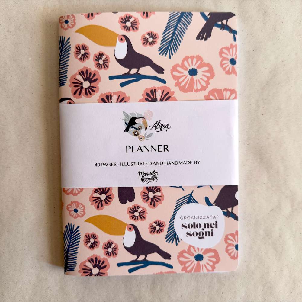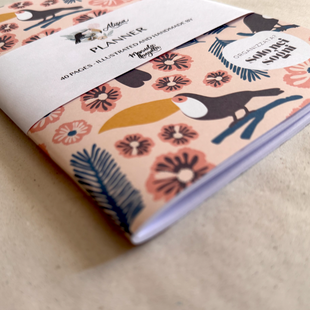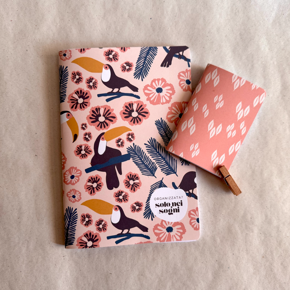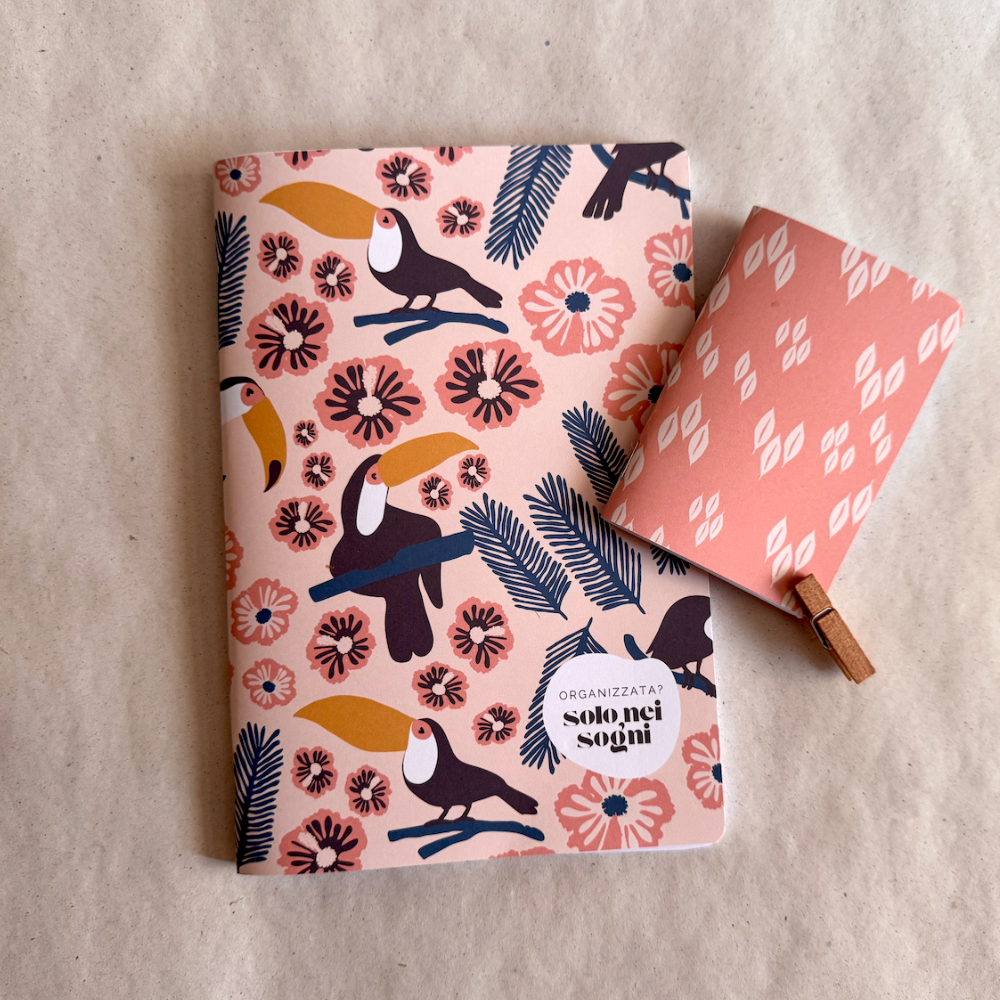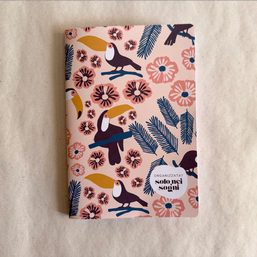 A5 daily planner (40 pages / 80 pages) with toucan pattern on cream background