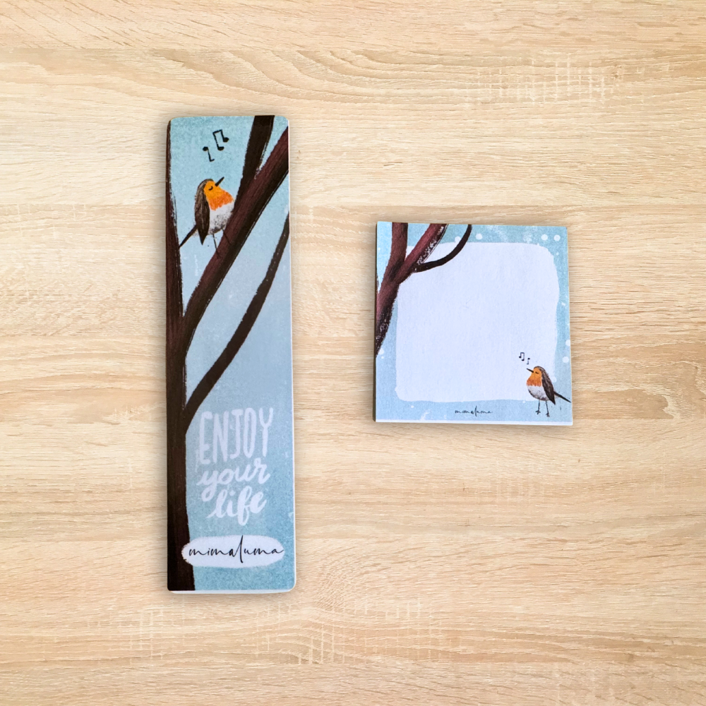 - Blocchetto note illustrato (30 fogli) – uno spazio gentile per i tuoi promemoria o messaggi del cuore.