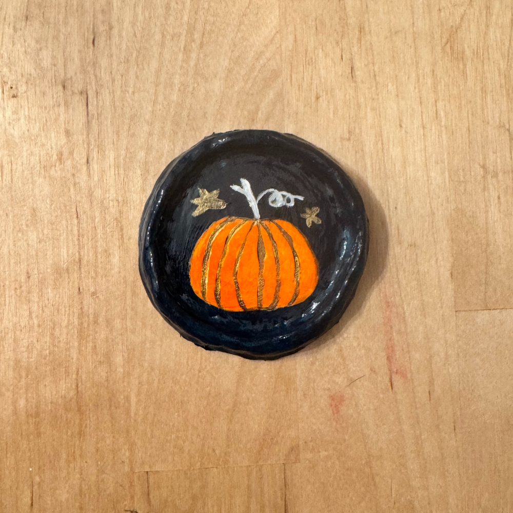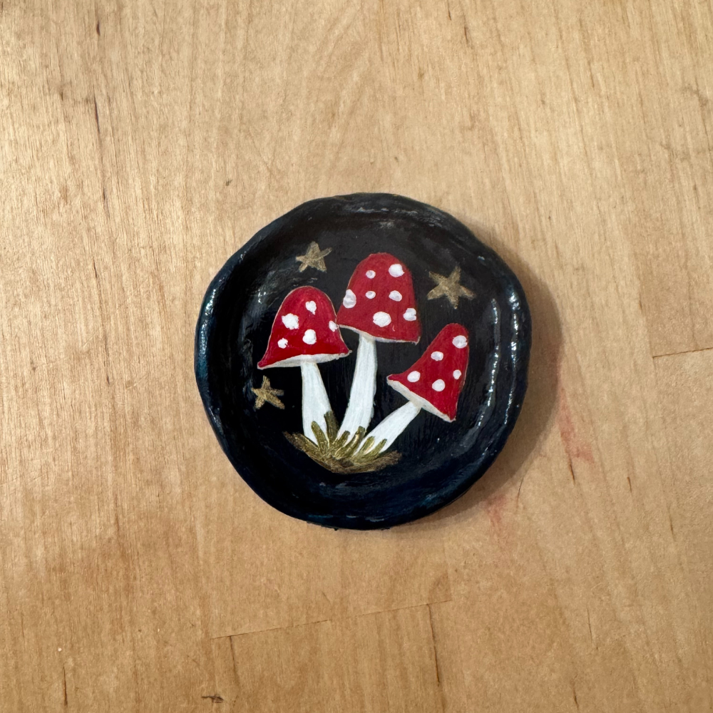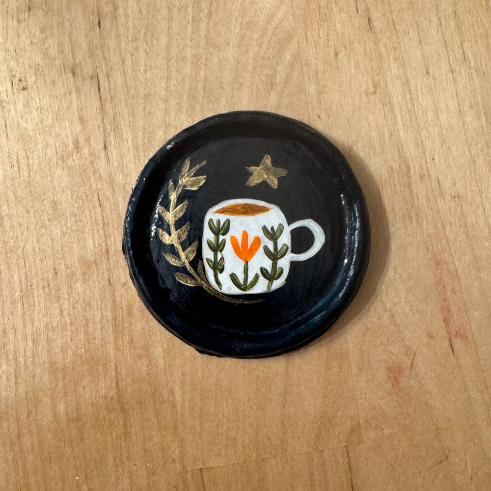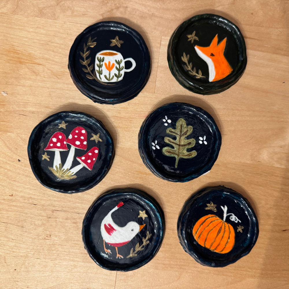 Tiny worlds captured in a circle of clay and paint.